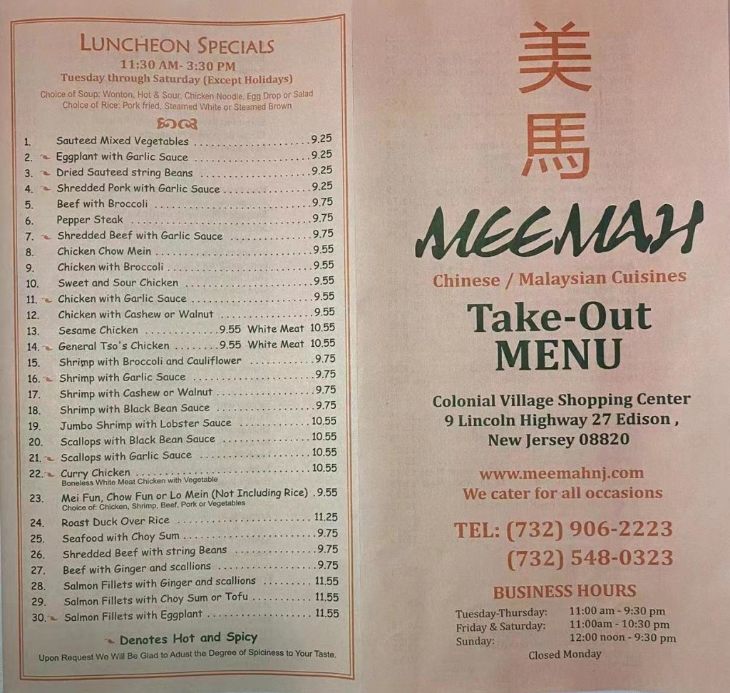Mee mah not only offers great food but great service as well. Colonial village shopping center 9 lincoln hwy, edison, nj 08820. Information shown may not reflect recent changes.